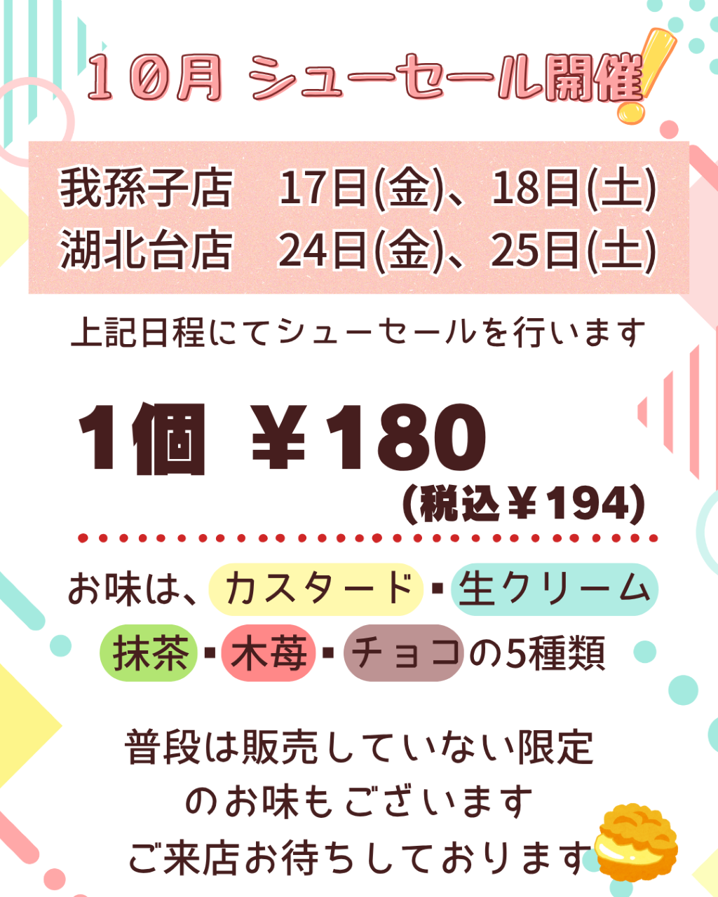 10月のシューセールの日程は下記の通りです。年内最後のシューセールになります!